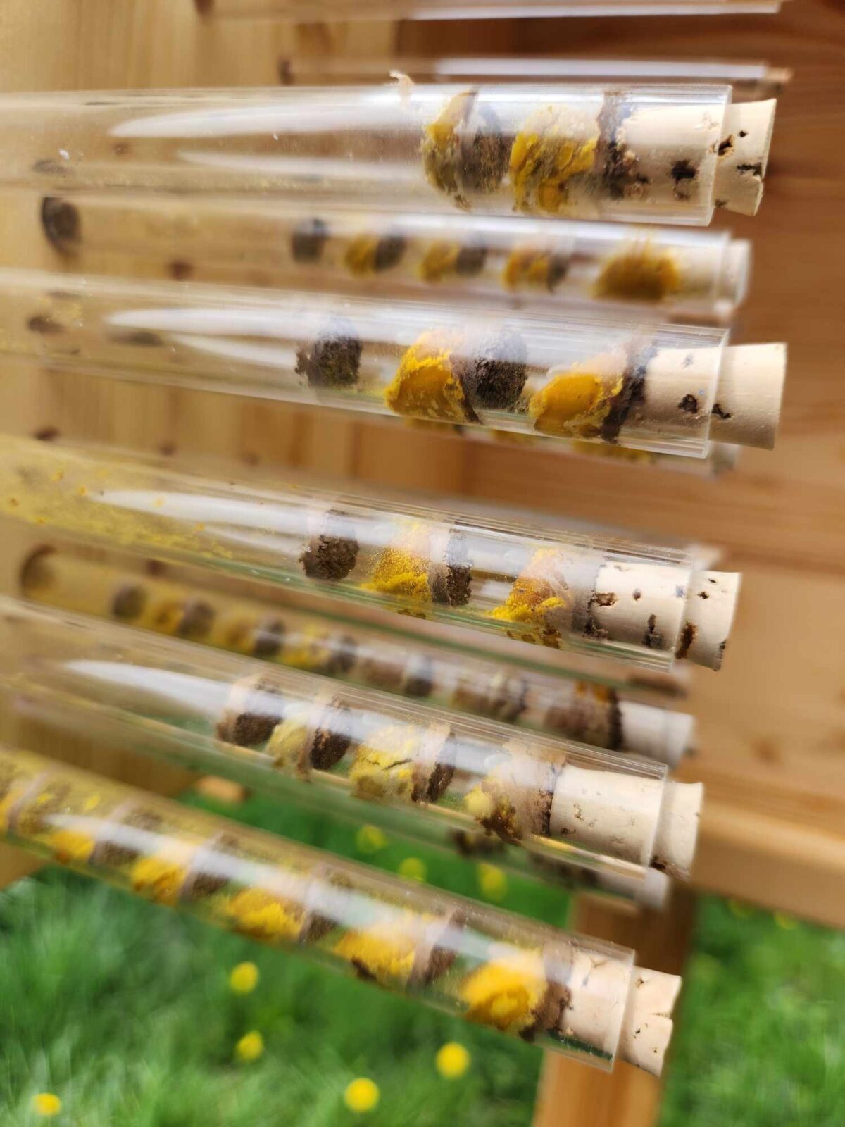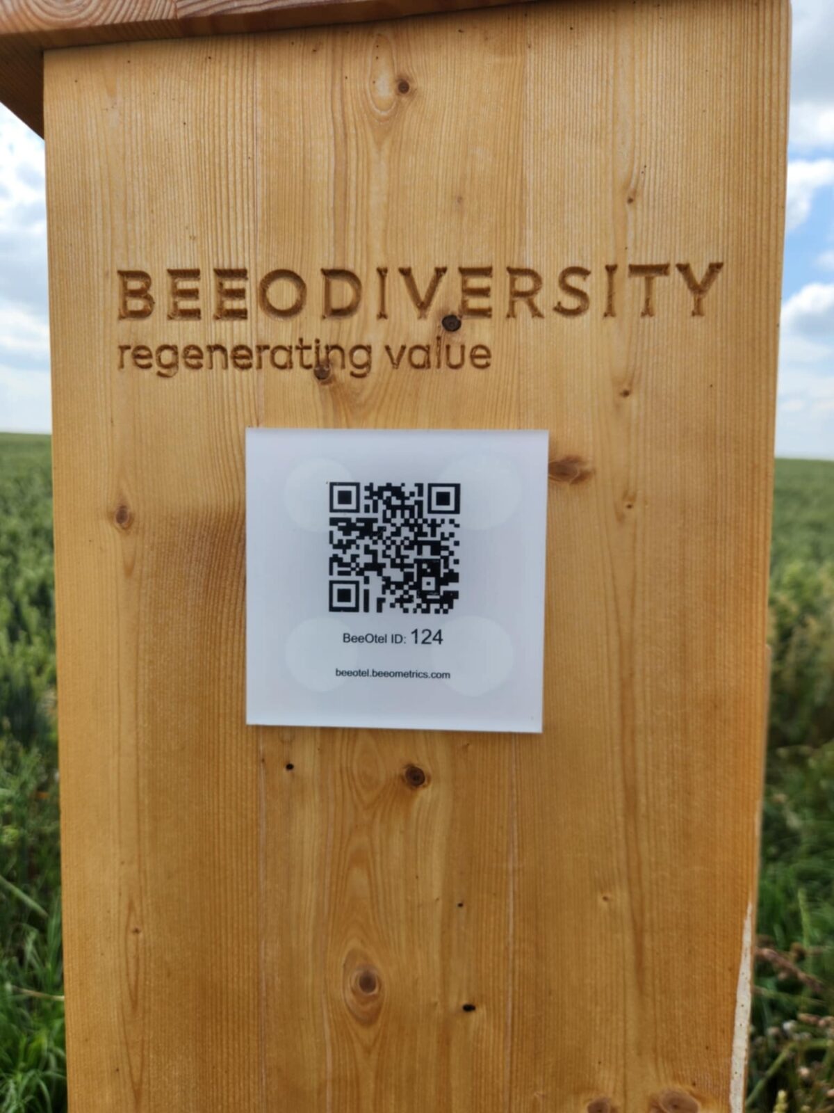 “Every two weeks, the farmer takes a moment to scan the code, photograph the dials, and carefully replace the tubes that have been occupied. When a bee lays an egg, it seals the tube with a cap made from soil or resin, leaving behind a trace of where it’s been - a mix of pollen, sometimes nectar, and the stories of nearby plants” shares Quentin Meekers, Biometrics Lead (Biodiversity).